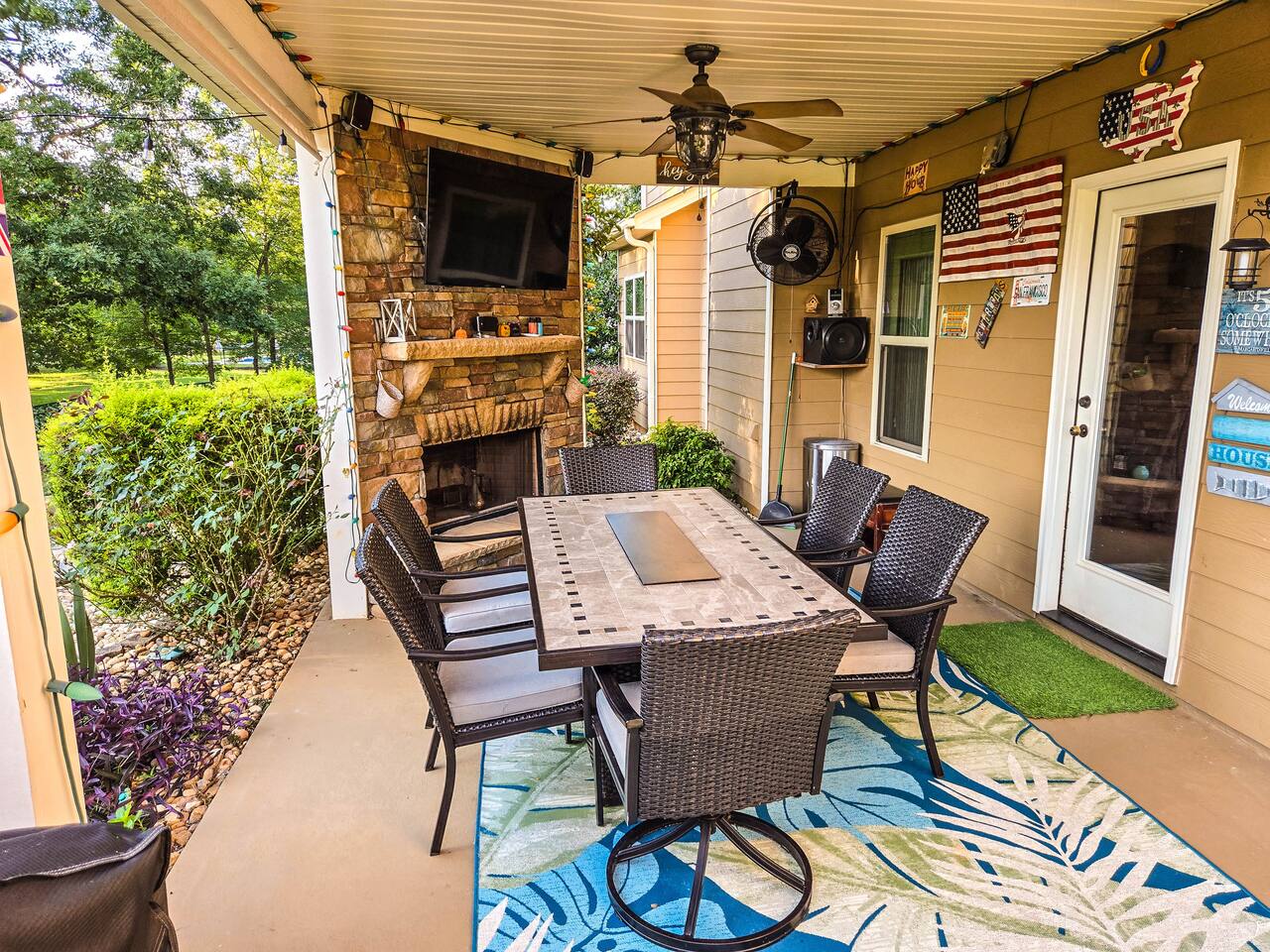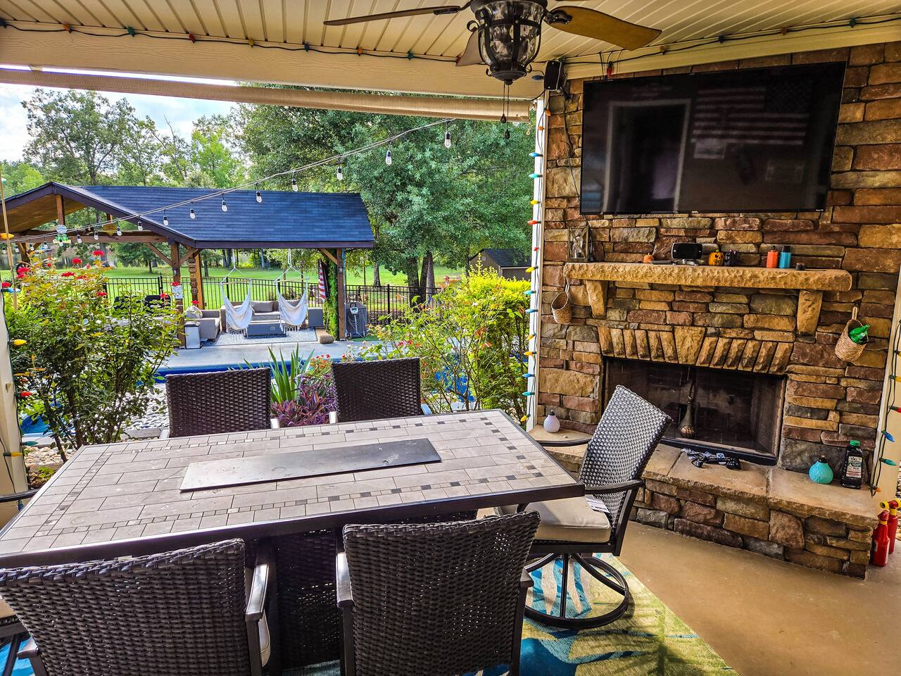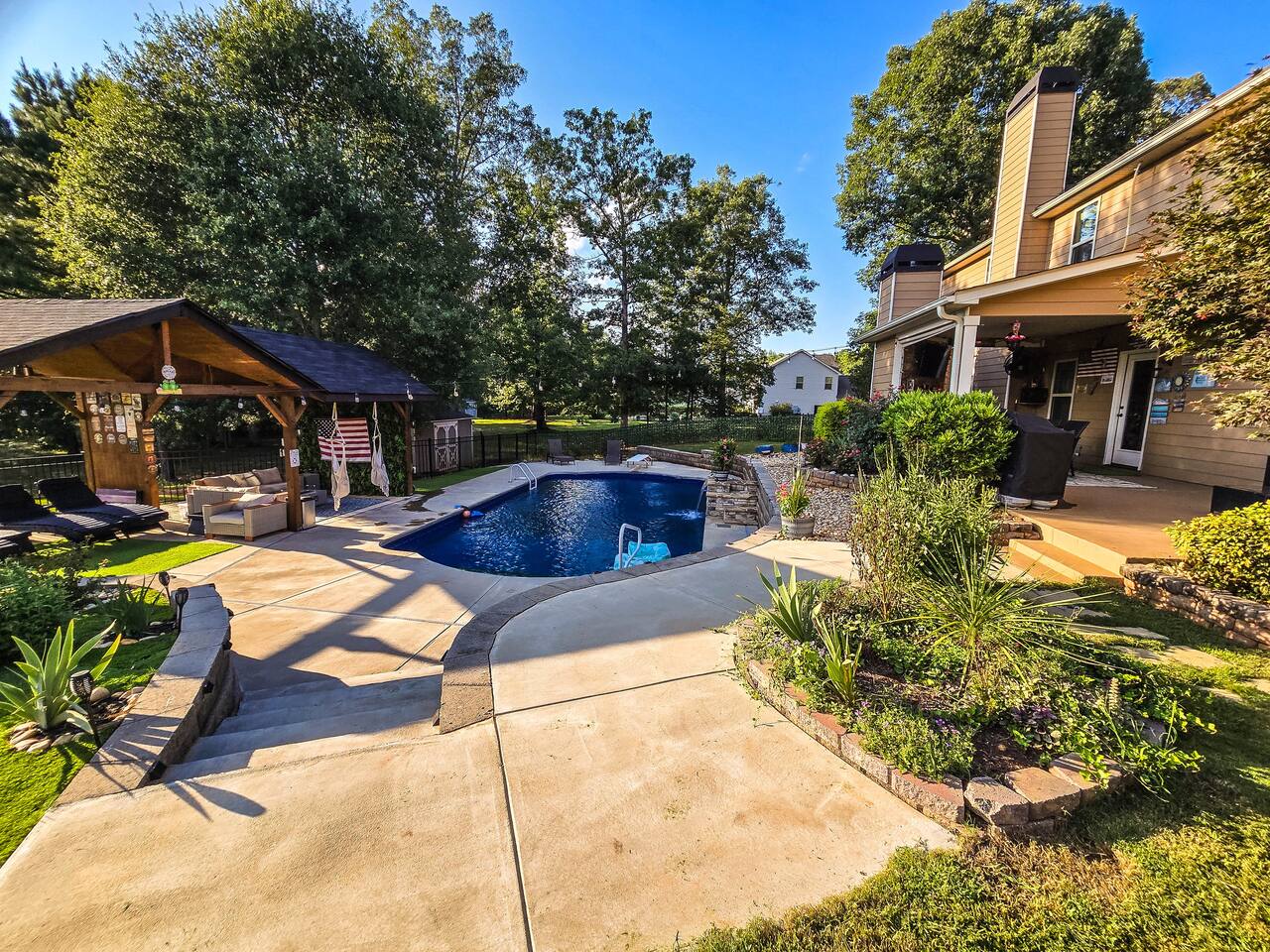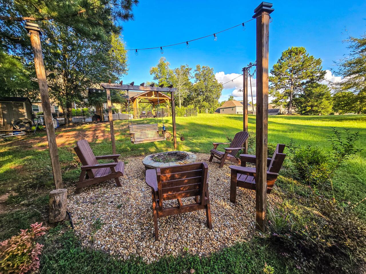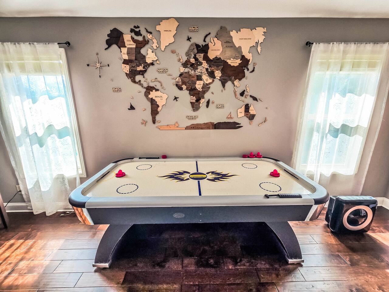 Stylish 6-Bedroom Lakefront Getaway | Pool • Game Room • Private Pier Welcome to your private retreat, ideal for families, groups, and individuals seeking to relax, recharge, and reconnect. This spacious home offers direct lake access with its own private pier, making it ideal for enjoying morning coffee by the water, fishing, or launching a kayak. Inside, you’ll find over 3400 square feet of well-designed living space with multiple gathering areas, a game lounge with a pool table, air hockey, and an Xbox, and a comfortable open-concept layout that brings everyone together. Step outside to a resort-style backyard complete with a swimming pool, a covered back porch featuring a grill, fireplace, fire pit table, and TV, and a luxury gazebo boasting a propane fire pit, oversized seating, and an outdoor TV. Whether you’re enjoying lake views, dining under the stars, or playing games with the family, this home is built for unforgettable memories. The space: - 6 spacious bedrooms, three full bathrooms, one half bathroom ** Main-level Main Suite with private bath stocked with shampoo, conditioner, and body wash - 5 upstairs bedrooms: ** 3 rooms with Queen beds ** 1 room with a King bed ** 1 room with a triple Twin bunk (perfect for kids) - 2 full bathrooms upstairs stocked with shampoo, conditioner, and body wash - Fully equipped kitchen with open flow to dining & living areas - Second-floor: ** Game lounge with pool table, air hockey, and Xbox Private backyard with: - Firepit with bench swing and wooden chairs - Seasonal swimming pool - Covered back porch with a grill, fireplace, and a TV - Patio table with propane firepit. - Large gazebo with propane firepit, swings, four lounge pool benches, couches, and a TV - Private lake entrance with private pier For your safety and the security of the property, outdoor security cameras are in place. These are actively recording and located: ** In the backyard, covering the pool and gazebo area ** In the front yard, monitoring the driveway and entry ** On both sides of the home for full exterior coverage - There are no cameras inside the home or in any private spaces. Driveway parking for 5–6 vehicles