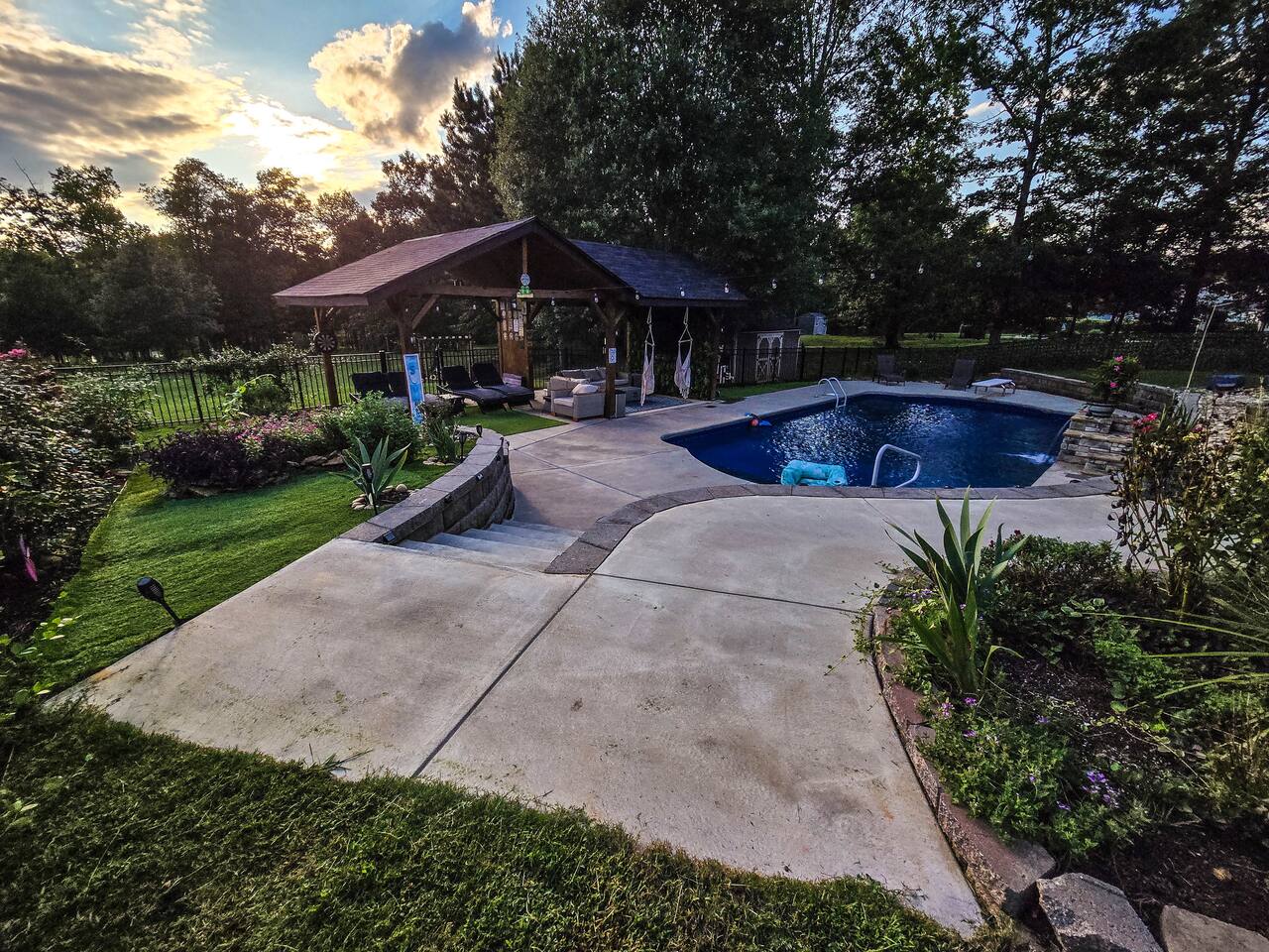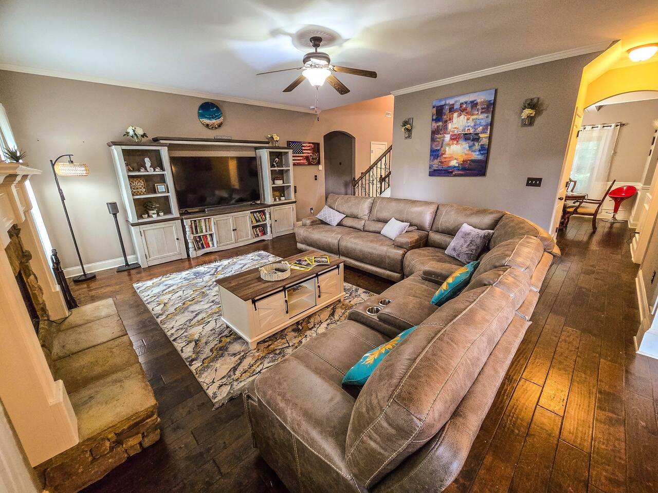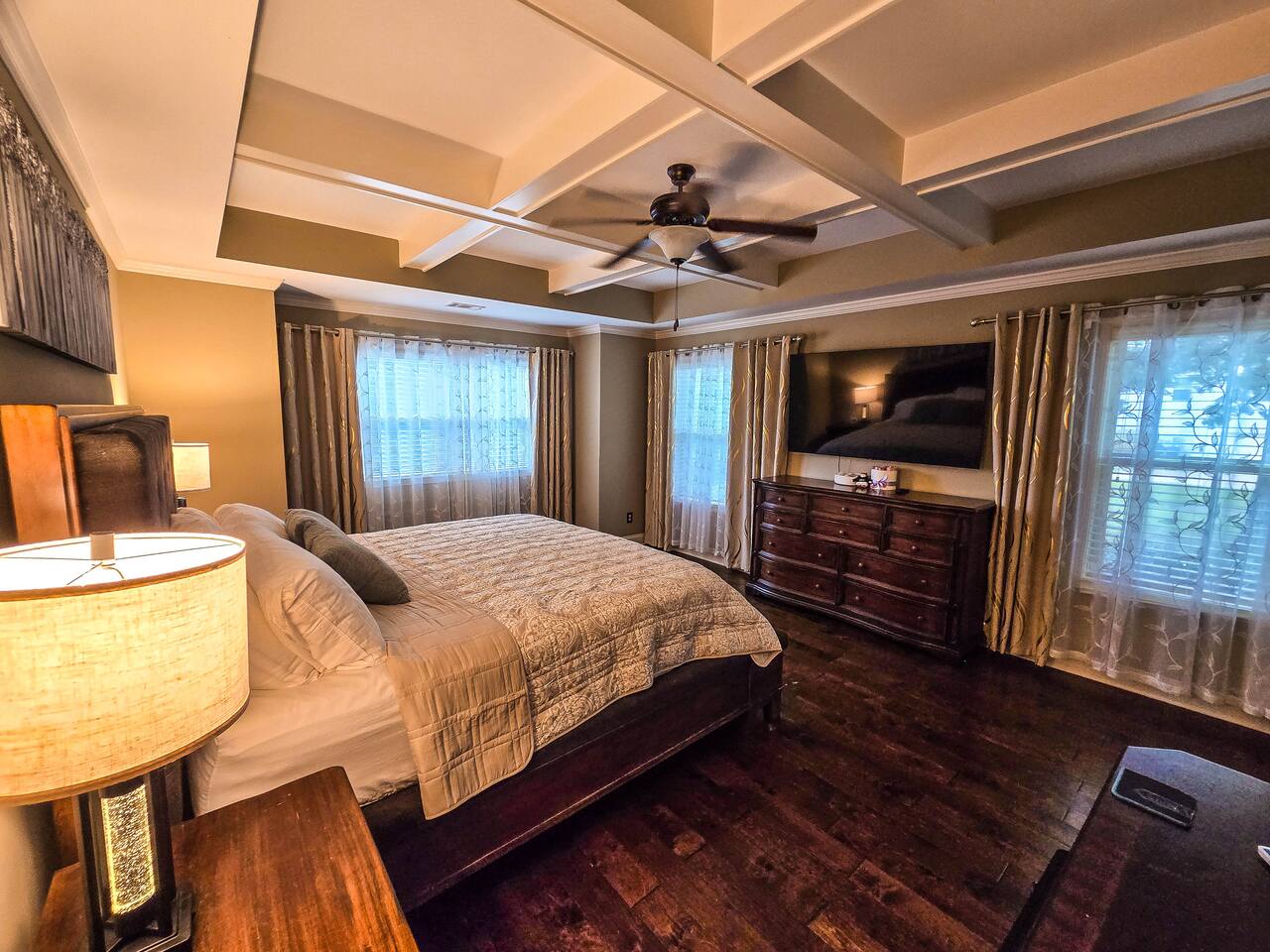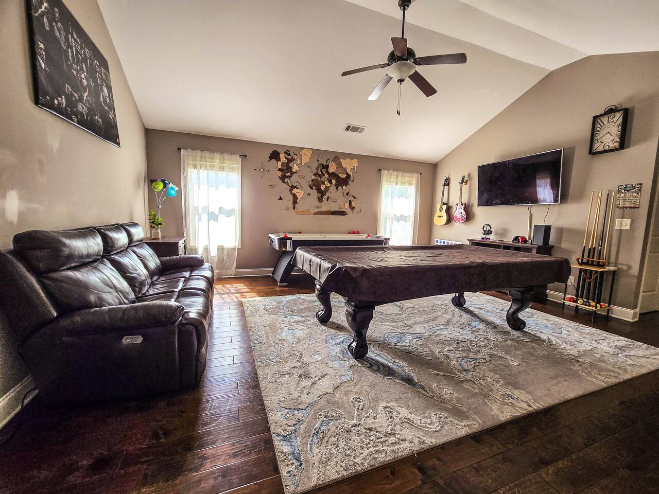 Stylish 6-Bedroom Lakefront Getaway | Pool • Game Room • Private Pier Welcome to your private retreat, ideal for families, groups, and individuals seeking to relax, recharge, and reconnect. This spacious home offers direct lake access with its own private pier, making it ideal for enjoying morning coffee by the water, fishing, or launching a kayak. Inside, you’ll find over 3400 square feet of well-designed living space with multiple gathering areas, a game lounge with a pool table, air hockey, and an Xbox, and a comfortable open-concept layout that brings everyone together. Step outside to a resort-style backyard complete with a swimming pool, a covered back porch featuring a grill, fireplace, fire pit table, and TV, and a luxury gazebo boasting a propane fire pit, oversized seating, and an outdoor TV. Whether you’re enjoying lake views, dining under the stars, or playing games with the family, this home is built for unforgettable memories. The space: - 6 spacious bedrooms, three full bathrooms, one half bathroom ** Main-level Main Suite with private bath stocked with shampoo, conditioner, and body wash - 5 upstairs bedrooms: ** 3 rooms with Queen beds ** 1 room with a King bed ** 1 room with a triple Twin bunk (perfect for kids) - 2 full bathrooms upstairs stocked with shampoo, conditioner, and body wash - Fully equipped kitchen with open flow to dining & living areas - Second-floor: ** Game lounge with pool table, air hockey, and Xbox Private backyard with: - Firepit with bench swing and wooden chairs - Seasonal swimming pool - Covered back porch with a grill, fireplace, and a TV - Patio table with propane firepit. - Large gazebo with propane firepit, swings, four lounge pool benches, couches, and a TV - Private lake entrance with private pier For your safety and the security of the property, outdoor security cameras are in place. These are actively recording and located: ** In the backyard, covering the pool and gazebo area ** In the front yard, monitoring the driveway and entry ** On both sides of the home for full exterior coverage - There are no cameras inside the home or in any private spaces. Driveway parking for 5–6 vehicles